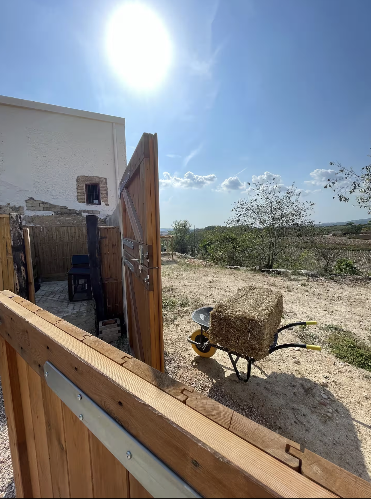 Aquí, cada rincón invita a relajarse: un porche para leer al atardecer, una chimenea para las noches frescas, espacios al aire libre para charlar bajo las estrellas, olivos y almendros que ofrecen su fruto en temporada, y rincones pensados para reconectar con lo esencial.
